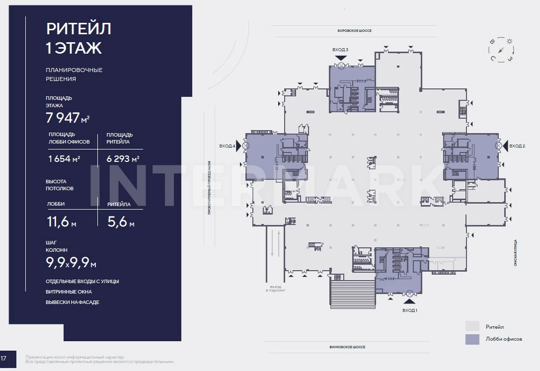 Продажа престижного делового центра в Новой Москве, в 5 минутах на автомобиле до Аэропорта, в 18 минутах до МКАД, Боровское шоссе и Киевское шоссе. Общая площадь здания 53 293 кв.м., площадь офисов 33 100 кв.м, площадь ритейла 9 300 кв.м. Подземный паркинг на 520 м/м, 22 лифта с доступом из паркинга, 4 независимые входные группы, 24/7 доступ в деловой центр, панорамное остекление, отделка shell&core, высота потолков до 5.8 м. Ввод в эксплуатацию 3 кв.2026 г.