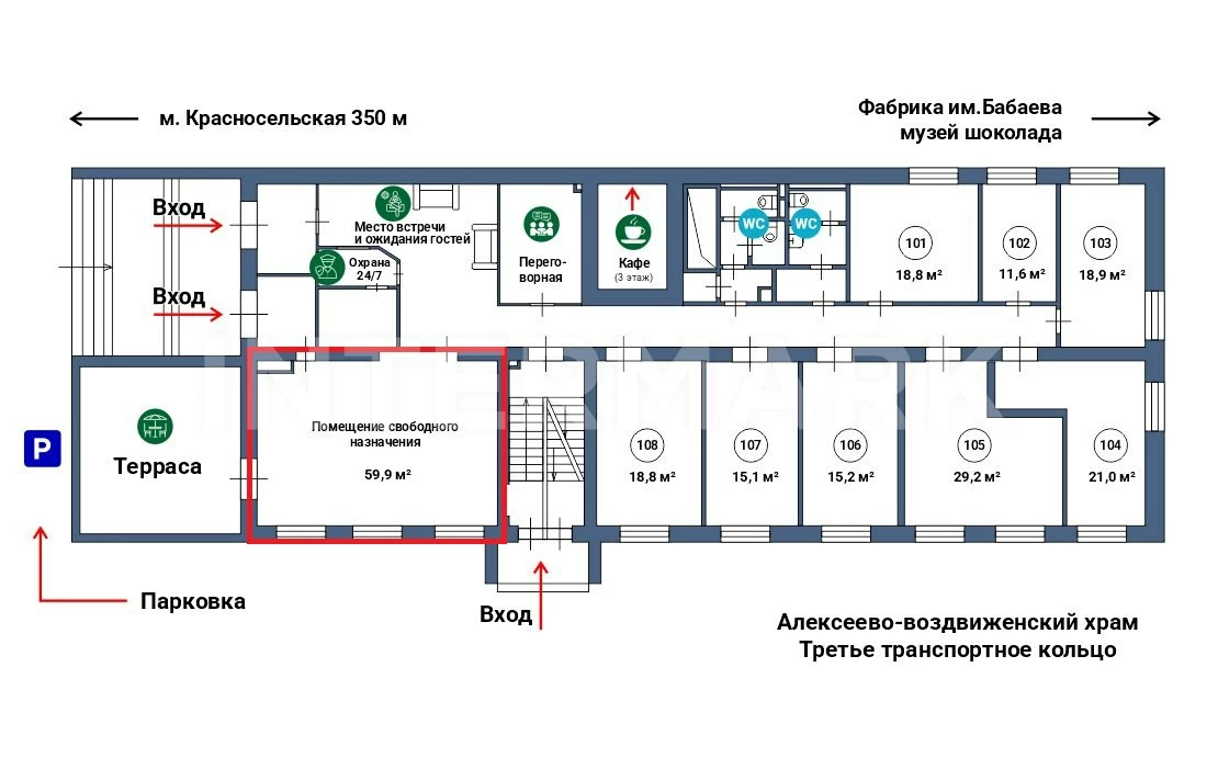 Предлагается в аренду помещение с новым ремонтом (весь 3 этаж) в Бизнес-Центре на Верхней Красносельской. Адрес: м. Красносельская (4 минуты пешком), ул. Верхняя Красносельская, д. 17А, стр. 1Б. В стоимость аренды включены: юридический адрес (ИФНС № 8), быстрый интернет, пользование переговорными комнатами, бесплатный кофе для всех арендаторов, ежедневная уборка, коммунальные и эксплуатационные платежи, НДС 5%. Охрана, видеонаблюдение, круглосуточный доступ 24/7.