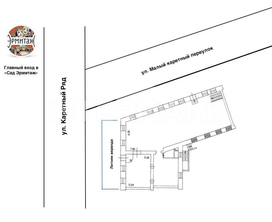 Продажа помещения 234 кв.м в административном здании на первой линии улицы Каретный ряд на пересечении с Петровкой. Напротив расположен парк Сад Эрмитаж, где проводится большое количество культурно-массовых мероприятий, театр «Сфера» и «Новая опера», рядом Страстной бульвар. Высокий пешеходный и автомобильный трафик за счет близкого расположения парков, прогулочных маршрутов. Характеристики помещения: Угловое помещение, два независимых входа, окна по периметру помещения, возможность размещения летней веранды для ресторана, полноценная вытяжка в полностью рабочем состоянии, электричество 60 кВт (возможно увеличение), высота потолков 3,7 м.