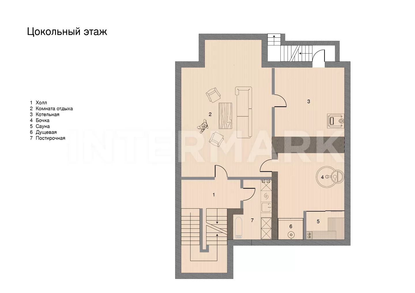 Всего здесь спроектировано 3 этажа и подготовлена эксплуатируемая кровля с уже установленным ограждением для отдыха в теплый сезон. Пространство позволяет легко разместить 3-4 спальни с личными ванными комнатами, рабочий кабинет, а также кухню-гостиную-столовую с выходом на террасу и участок.