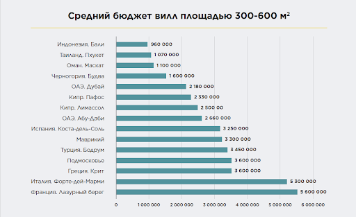 Средний бюджет покупки виллы в 2026 году составляет $2,84 млн, что на 8,4% выше год к году. Разрыв между самыми дорогими и самыми доступными рынками превышает 5 раз: