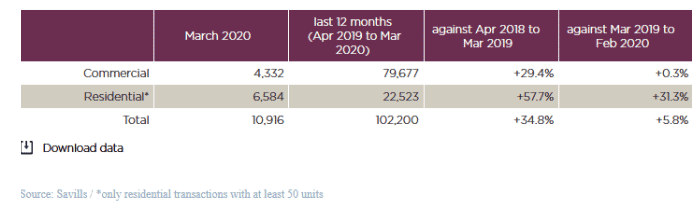 В марте объем сделок на немецком рынке инвестиций в недвижимость составил около 10,9 млрд евро (см. Таблицу ниже).