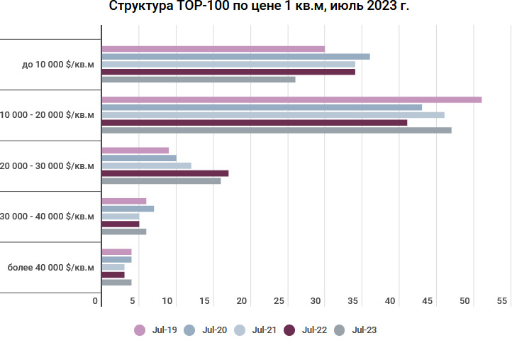 По итогам июля 2023 года значение индекса PMR TOP-100 для рынка элитного жилья Подмосковья составило $29,4 млн