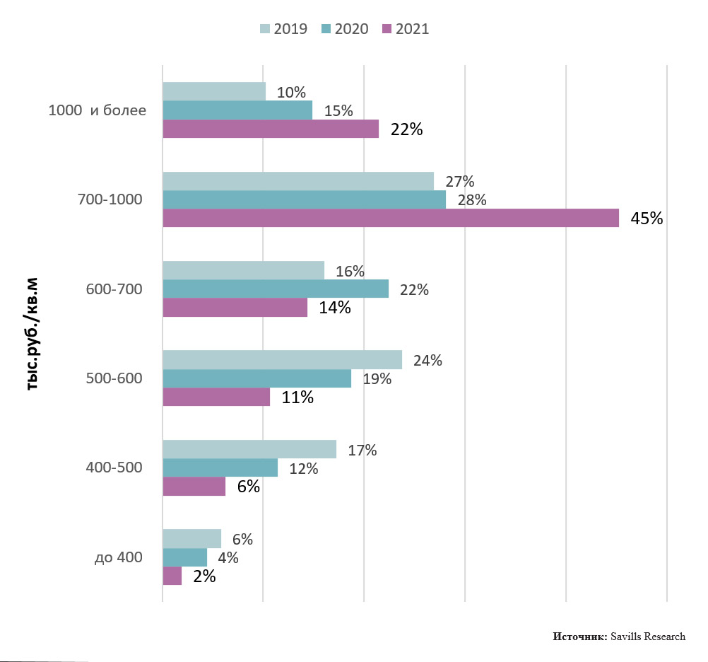 Спрос на квартиры-новостройки с ценой от 1 млн долл. США в январе-октябре 2021 года увеличился на 62% по сравнению с прошлогодним, при этом спрос на квартиры в готовых домах остался на уровне прошлого года.