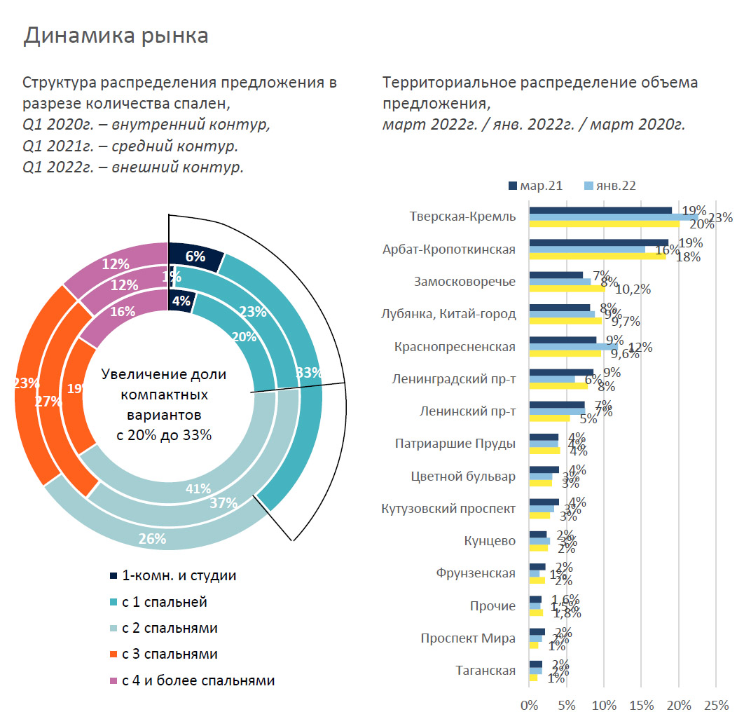 Свыше 2/3 объема предложения элитных квартир для аренды (68%) сконцентрировано в следующих районах Москвы: Тверская-Кремль (20%), Арбат- Кропоткинская (18%), Замосковоречье, Лубянка-Китай-Город и Краснопресненская (по 10% соответственно).
