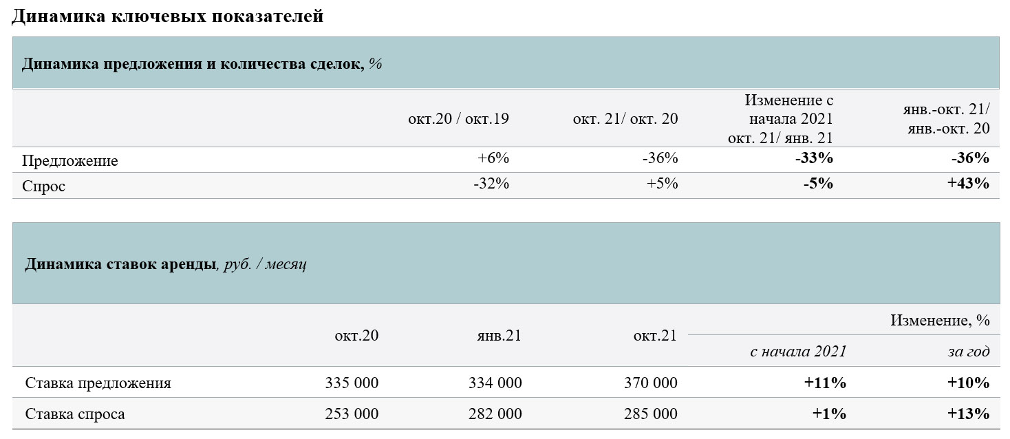 По причине ужесточения ограничительных мер спрос со стороны клиентов незначительно снизился в сравнении с последними месяцами. Ставки аренды также продемонстрировали небольшое уменьшение как по предложению, так и спросу – средний бюджет сейчас ниже показателя прошлого месяца на 5 тысяч.