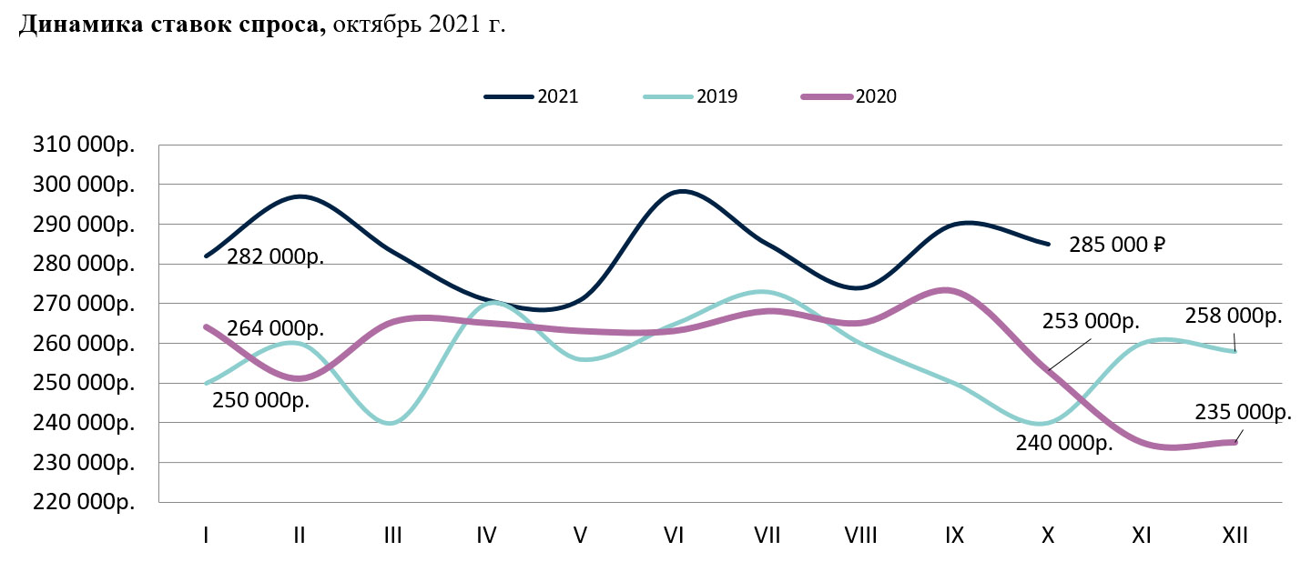 Разрыв между предлагаемой и запрашиваемой ставкой аренды остался на уровне прошлого месяца и составил 85 000 руб. или 30%.