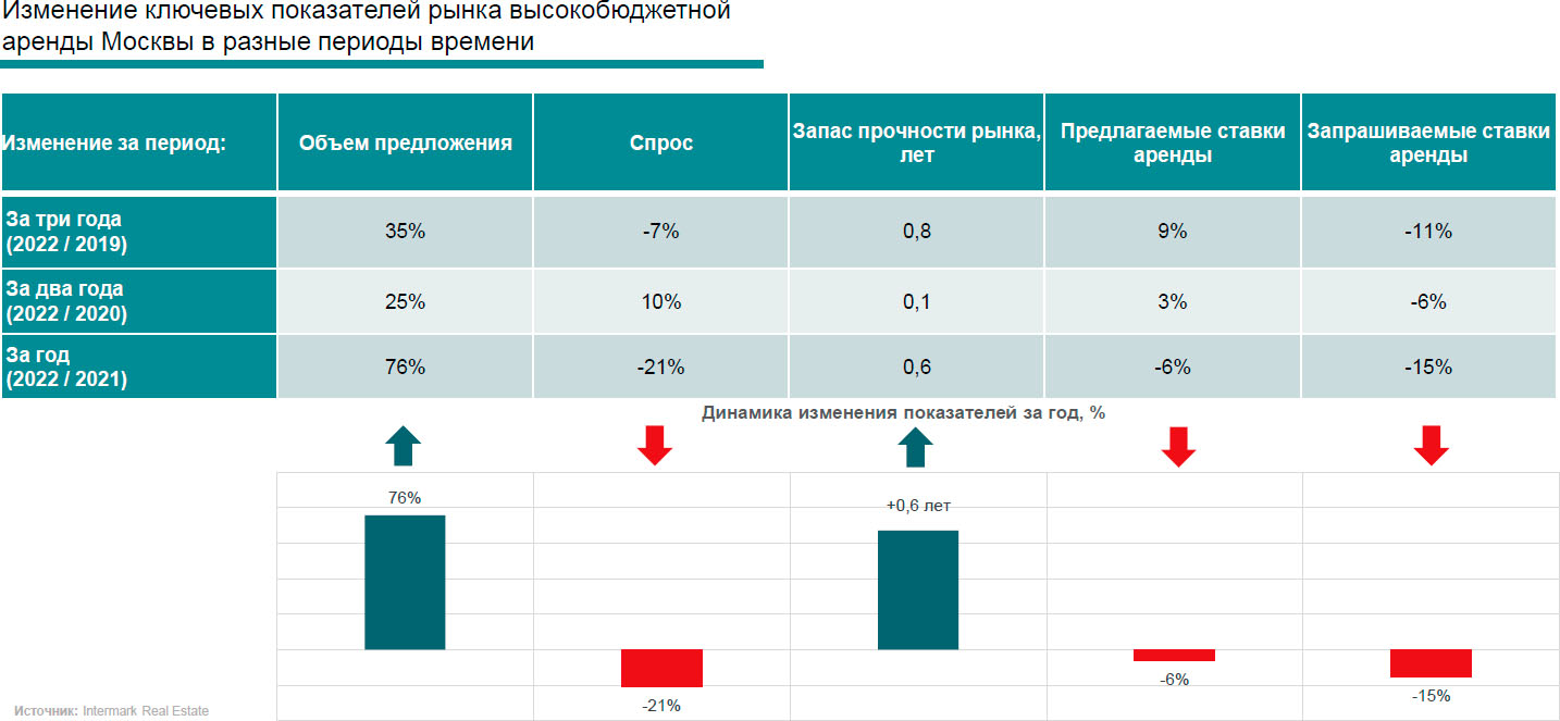 Основными причинами снижения запрашиваемых ставок в данный период стали активная позиция в торге из за большой конкуренции на рынке предложений, а также релокация за рубеж части обеспеченной аудитории арендаторов.