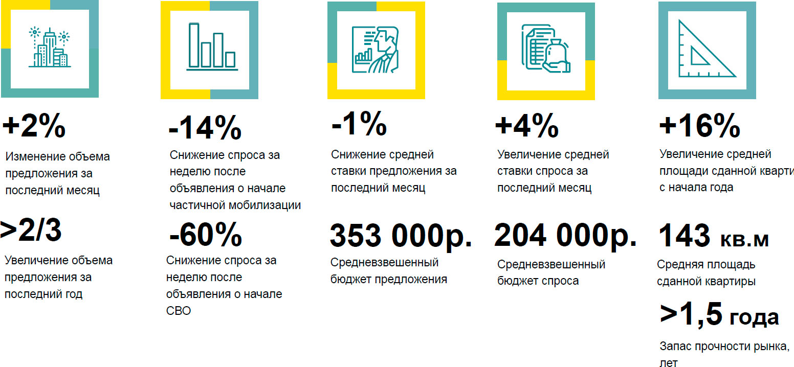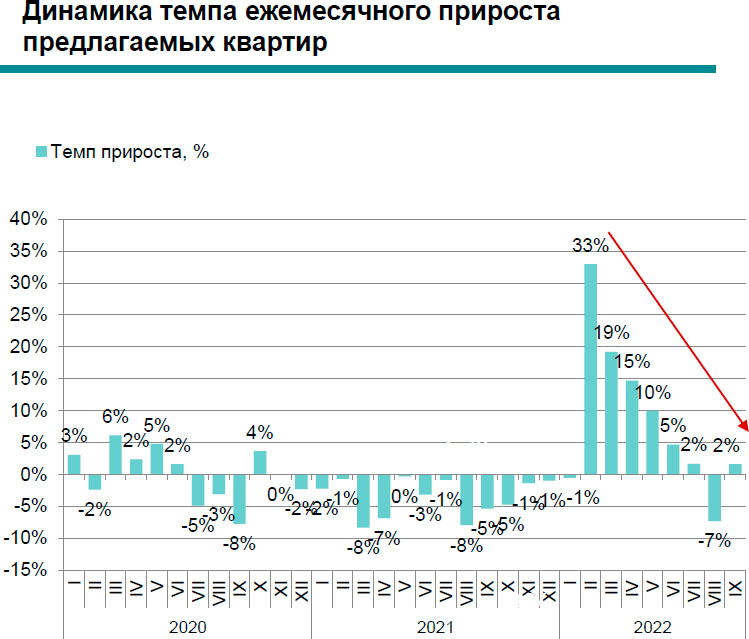 После объявления в сентябре о начале частичной мобилизации значительного роста предложения от собственников пока не происходит по нашим данным объем экспонируемых лотов в аренду по итогам сентября превысил на 2% значение предыдущего месяца.