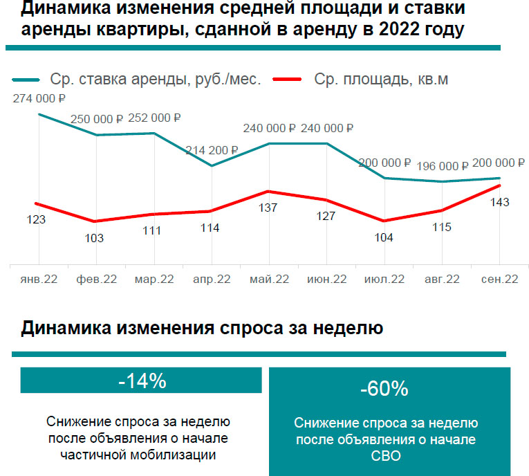 - на 14% меньше после объявления о частичной мобилизации (сравнивается число сделок за неделю перед объявлением и после объявления).