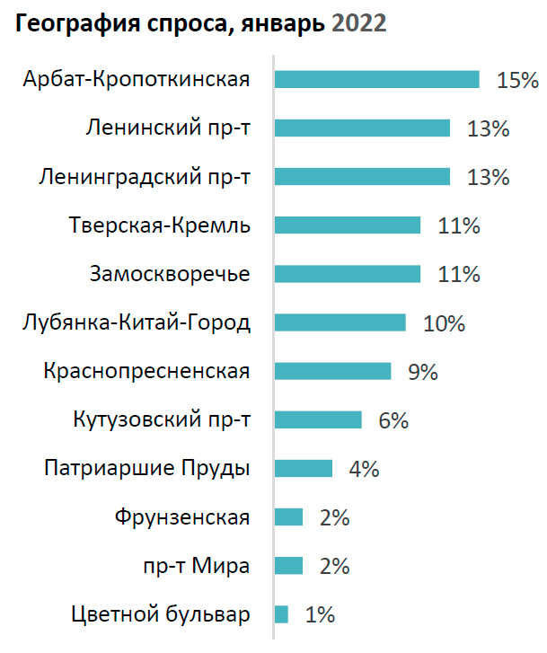 На начало февраля 2022 года самыми популярными районами на рынке высокобюджетной аренды стали: