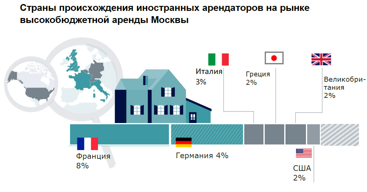 Среди иностранных клиентов интерес к аренде элитных квартир мы наблюдаем преимущественно со стороны граждан из Франции и Германии.